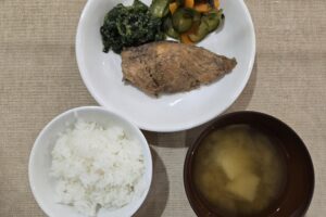 10月22日 ごはん じゃがいものみそ汁 煮魚 ほうれん草のごまみそ和え きゅうりとわかめの三杯酢