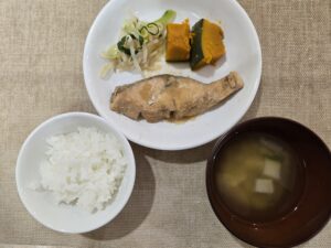 11月10日 ごはん 里芋のみそ汁 魚のおろし煮 二色甘酢和え 茹でかぼちゃ