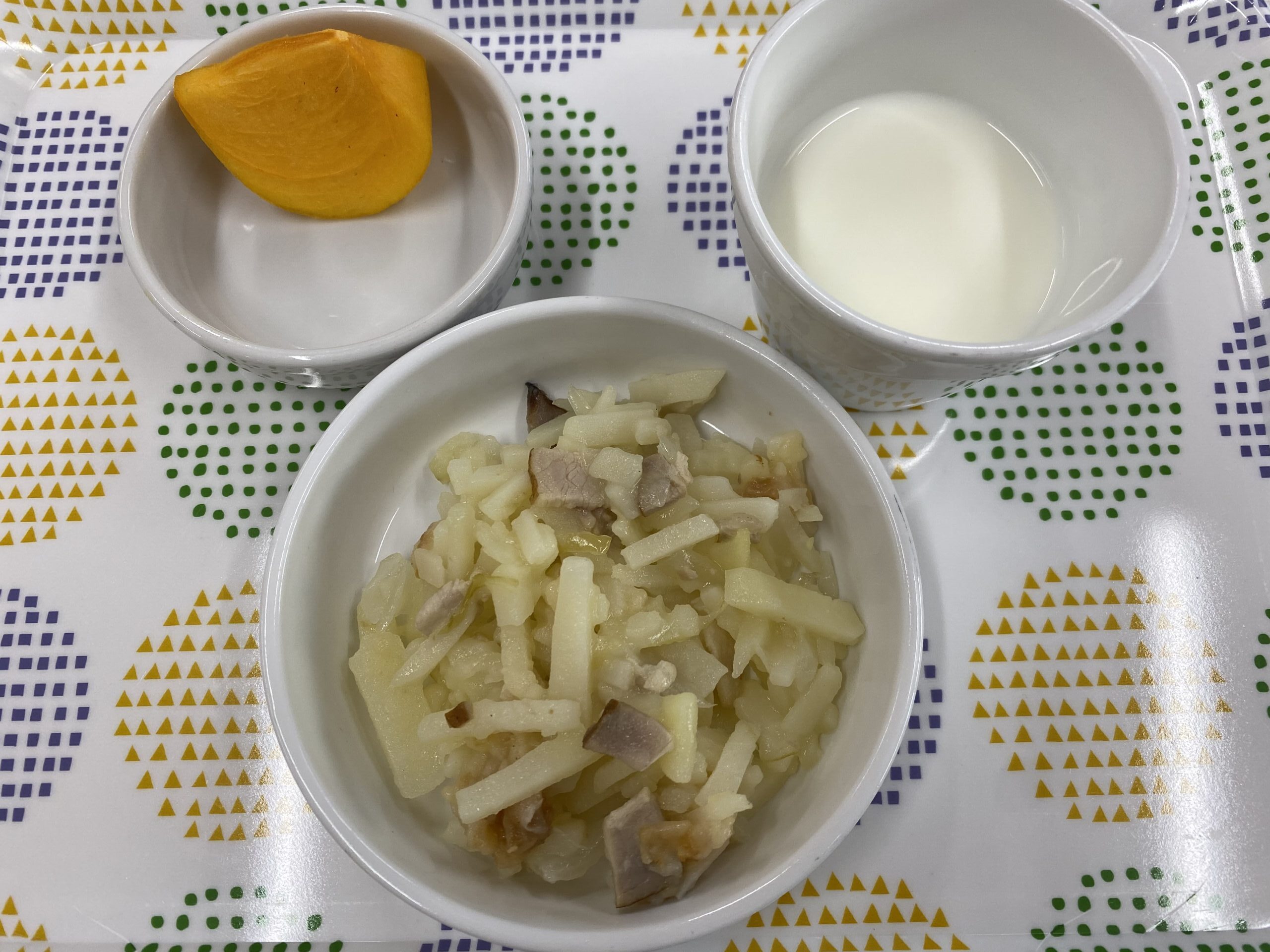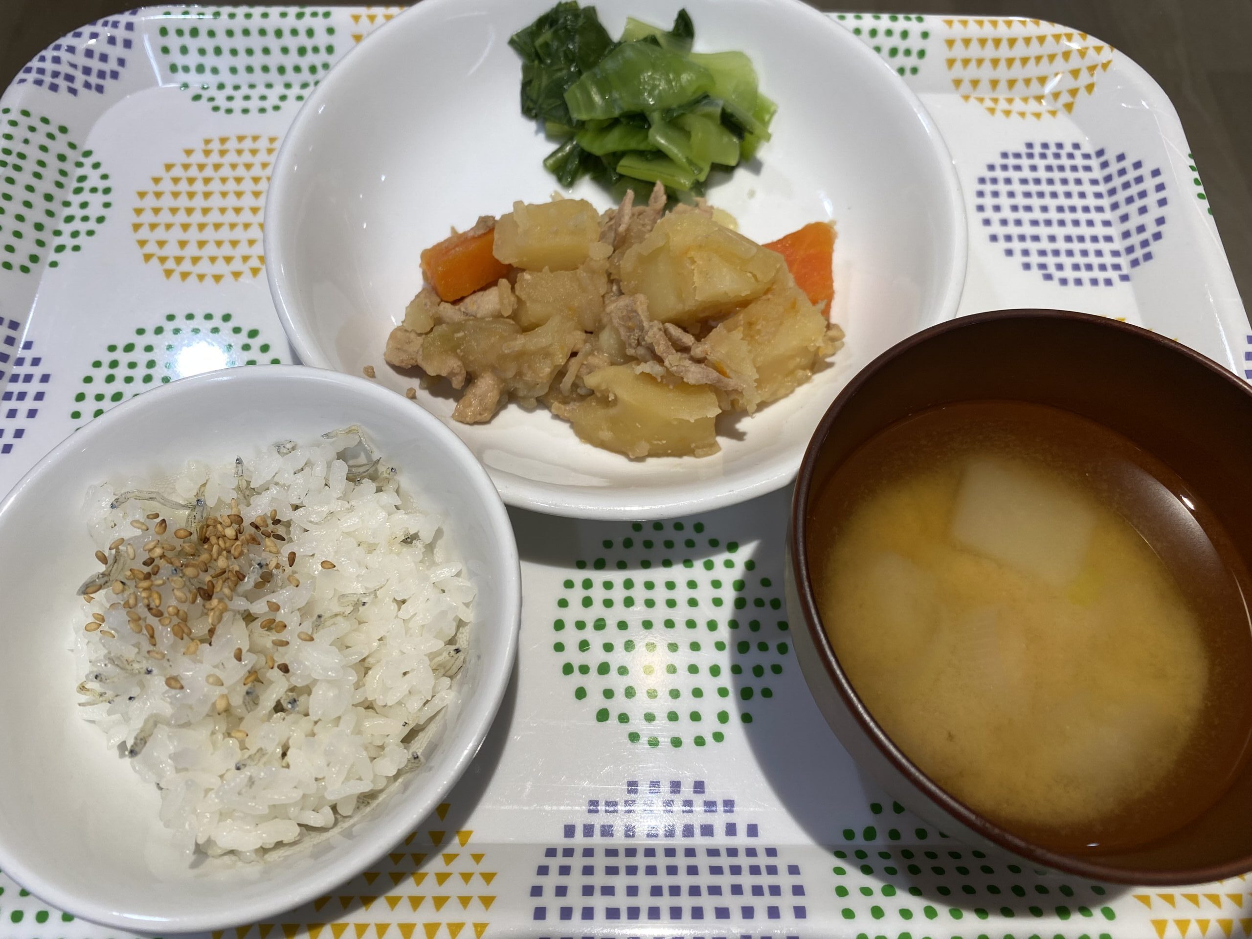 11月19日 じゃこご飯 かぶのみそ汁 肉じゃが ボイル青梗菜