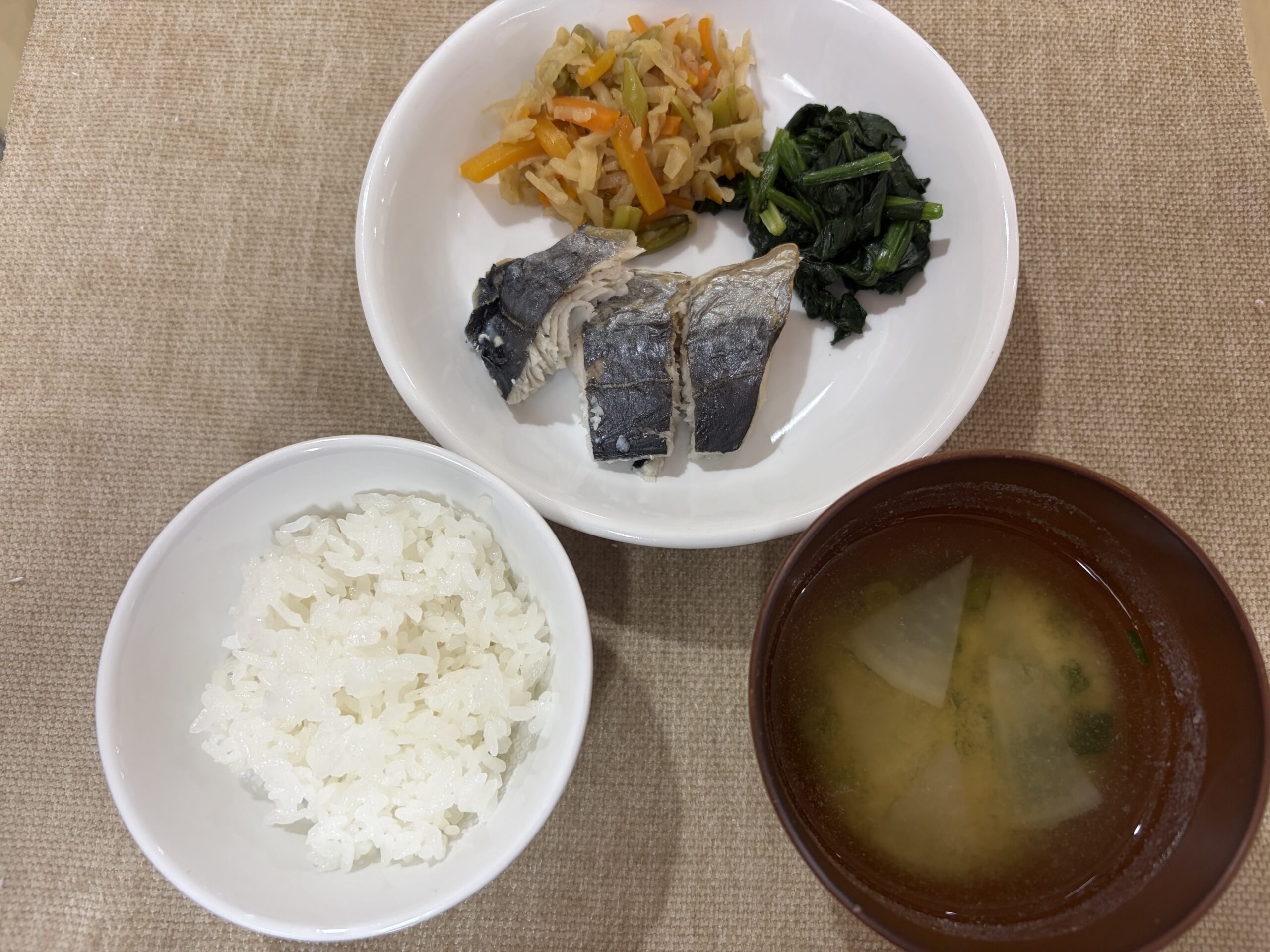 12月10日 ごはん 大根のみそ汁 さわらの塩焼き 切り干し大根の煮物 ボイルほうれん草