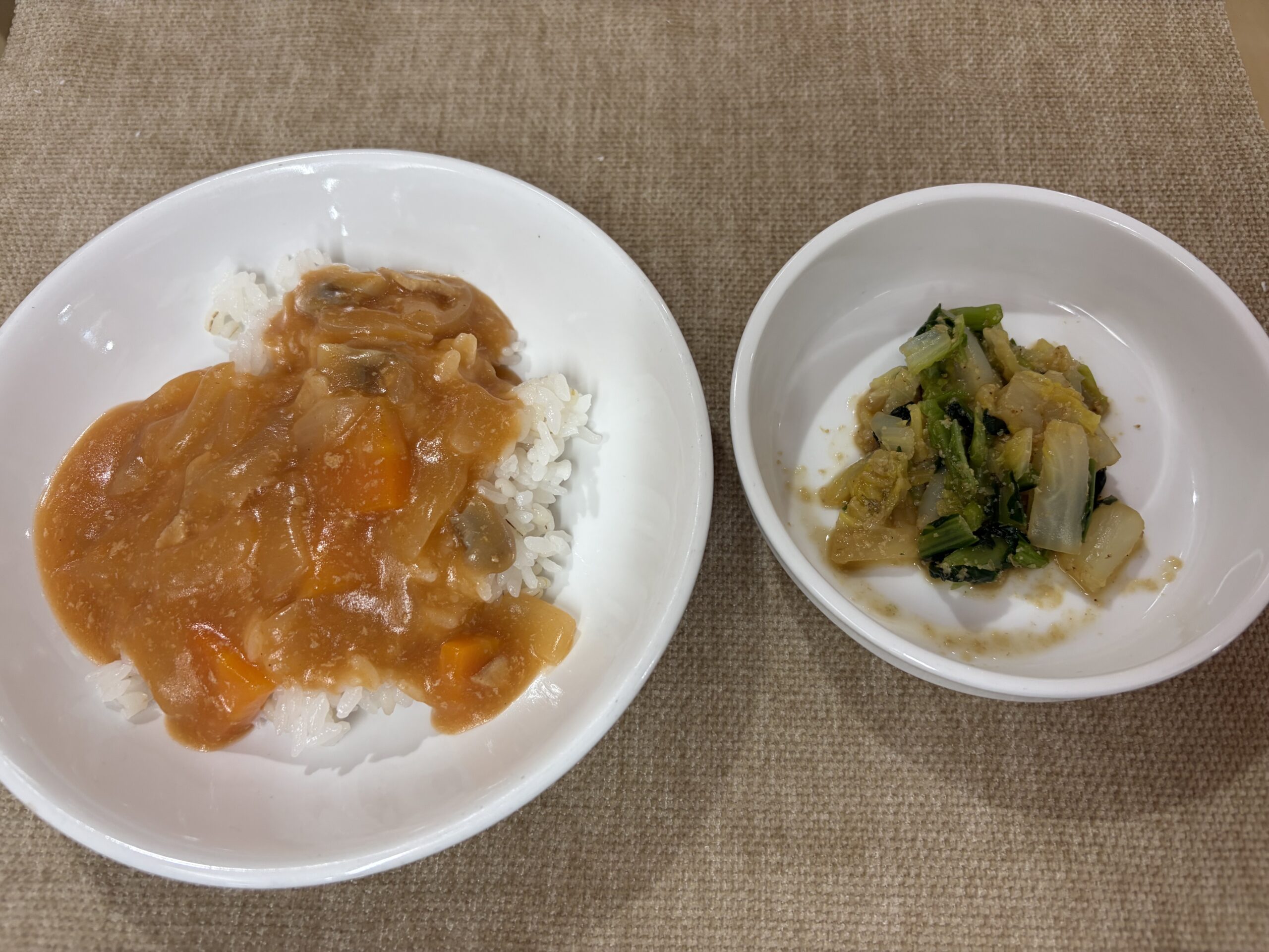 12月8日 ハヤシライス 白菜と小松菜のごま和え