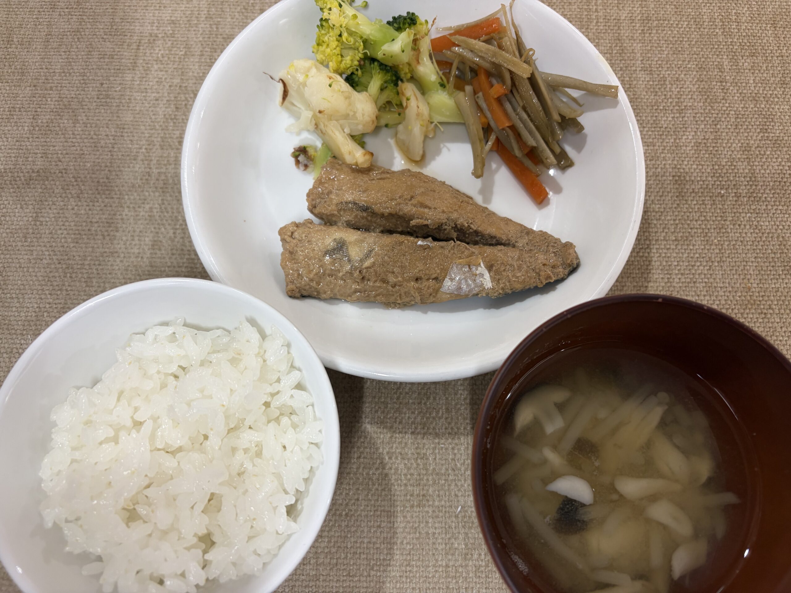 2月12日(木)ごはん もやしの味噌汁 煮魚 ブロッコリーとカリフラワーのおかか和え きんぴら煮