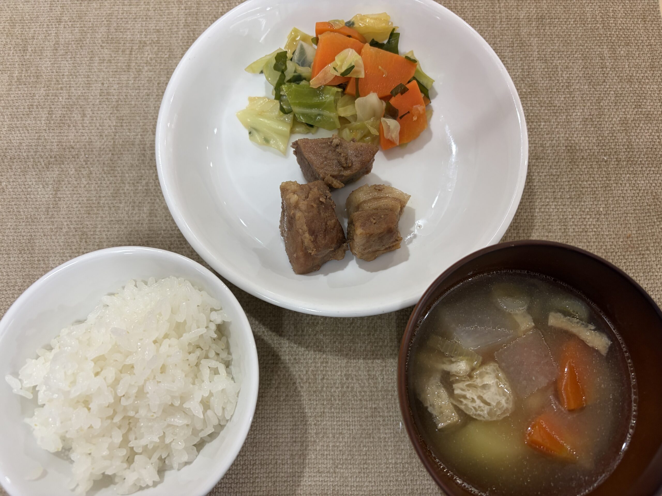 2月4日(水)ごはん 具だくさんみそ汁 豚の角煮 キャベツとわかめのナムル