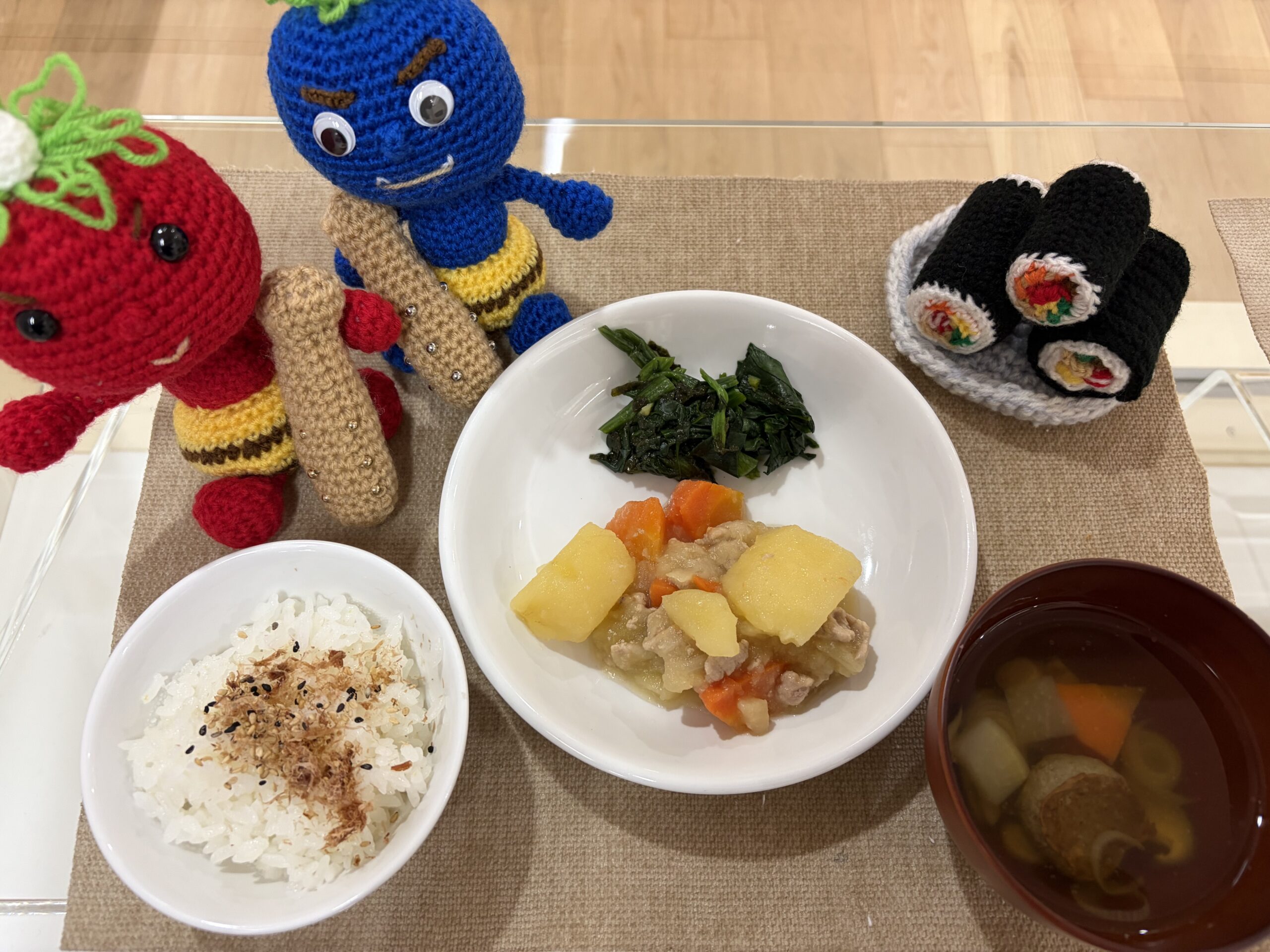 2月3日(火)ふりかけご飯 いわしのつみれ汁 塩じゃが ほうれん草の磯和え