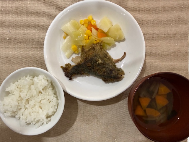 4月3日(金)ごはん 魚の風味焼 三色サラダ 粉ふき芋