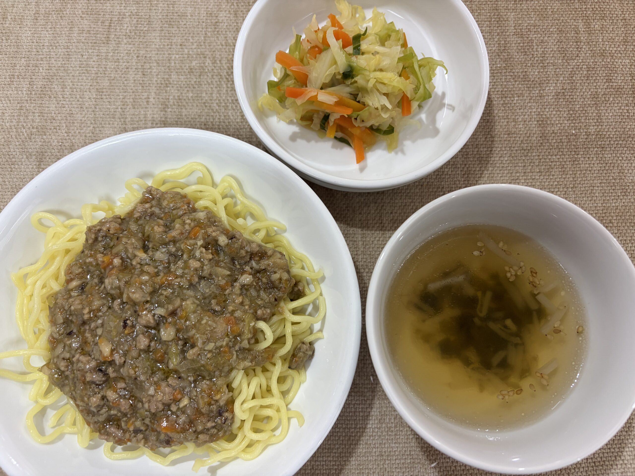 1月16日(金)ジャージャー麵 わかめのスープ キャベツと人参の梅肉和え